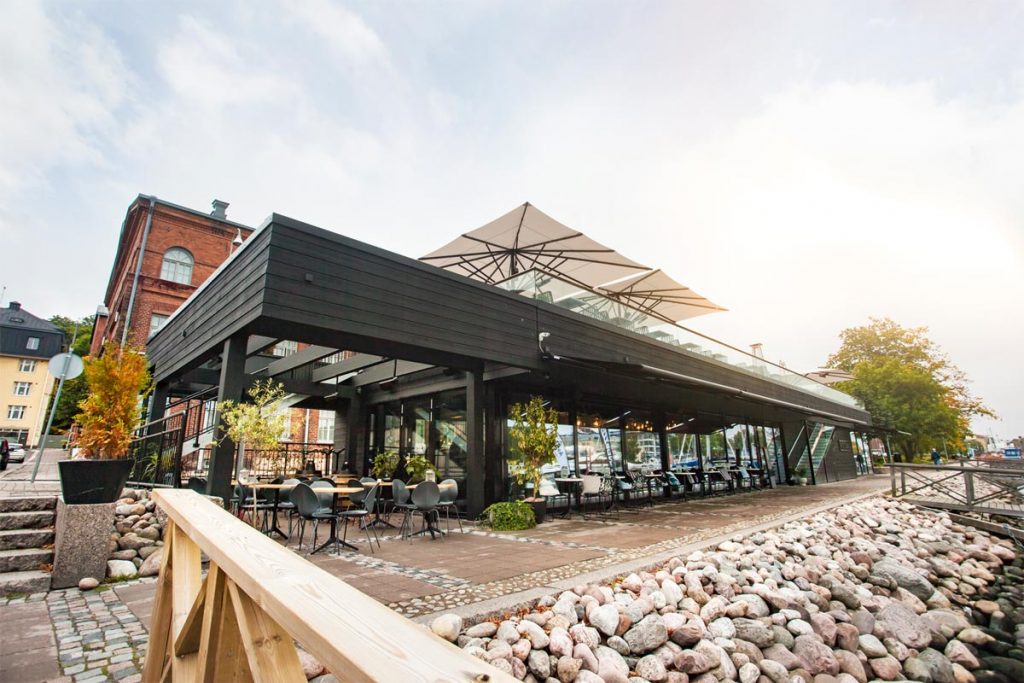 Julkisivun alumiinirakenteet sekä lasitus. Yläterassin ja laiturin kokolasikaiteet ja niiden asennus.